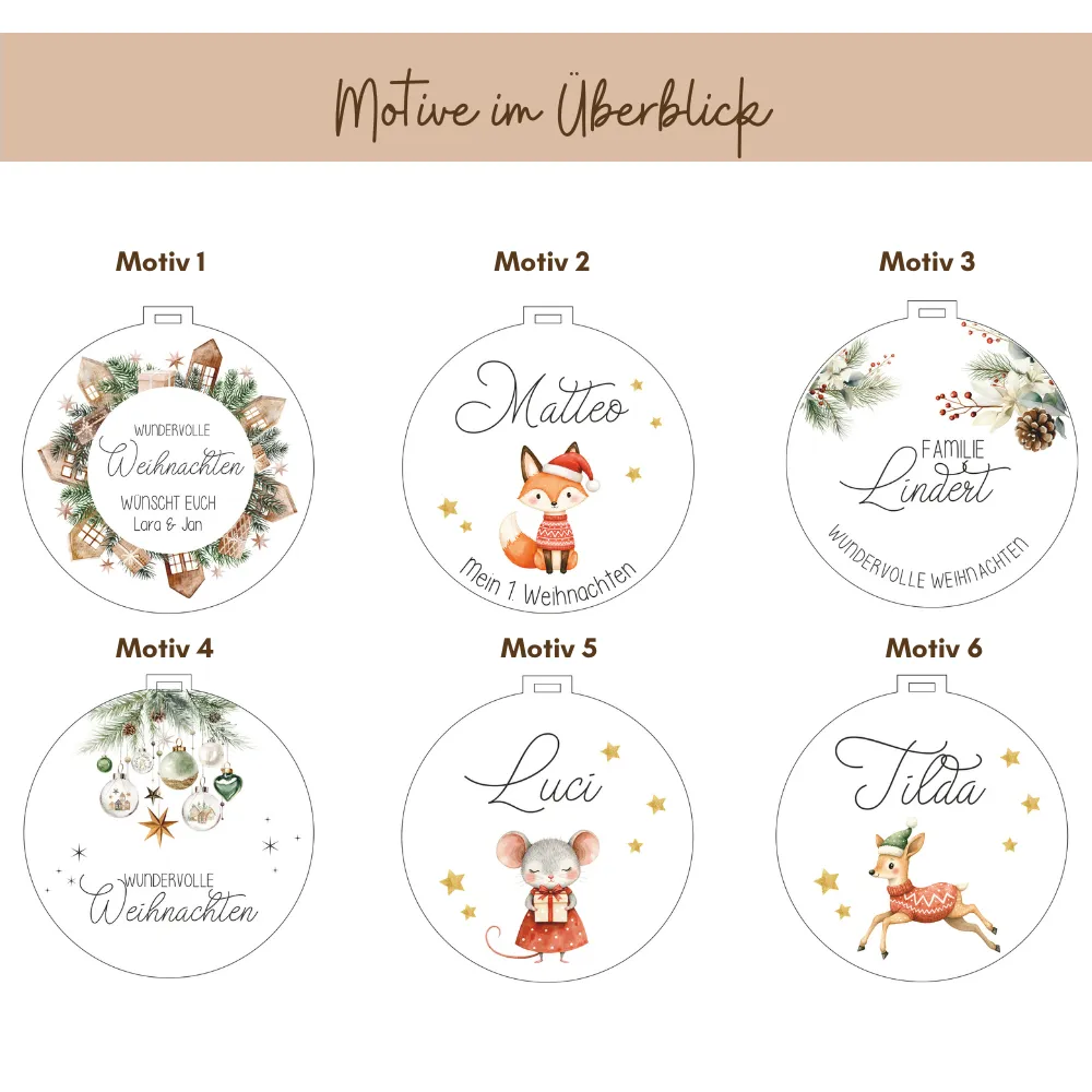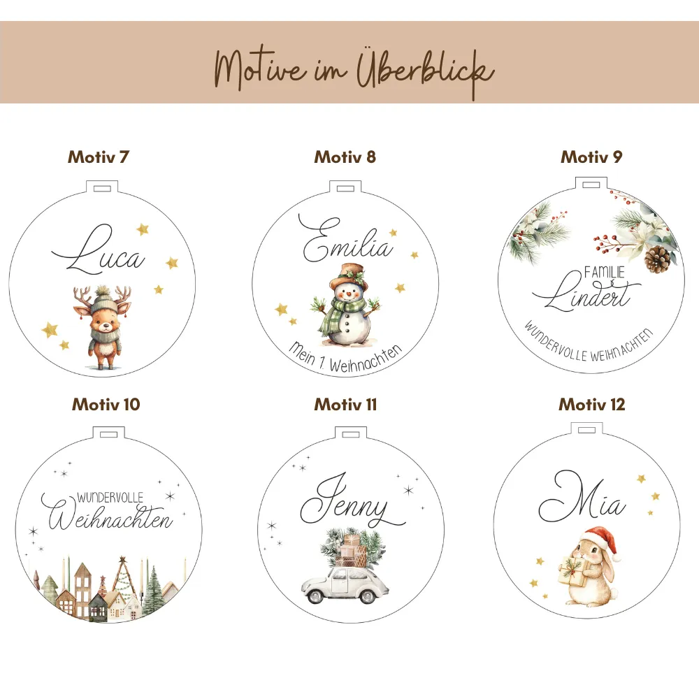 • hochwertigen UV Druck mit wunderschönen Weihnachtsmotiven + Wunschnamen